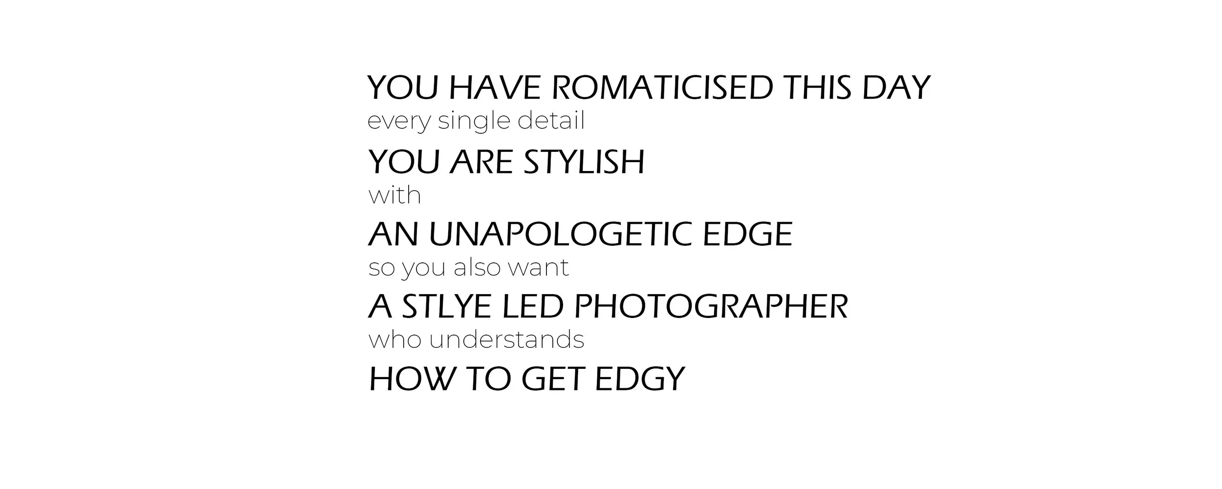 My experience in Fashion and Editorial photography has given me the opportunity to pass on these skills to my couples, to make their images fun, creative and original.